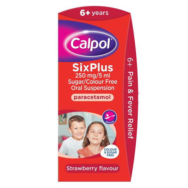 Calpol SixPlus has a pleasant Strawberry flavour and will relieve pain, fever, headaches, toothache, cold & flu symptoms.