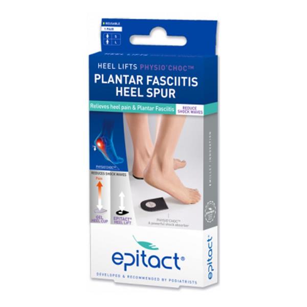 - Based on podiatrists recommendation, lifting heels up by 5mm is enough to reduce the strain and inflammation on the plantar fascia. Unlike other gel heel cups, Epitact heel lifts are thin and made of Physio'choc: a podiatrist-approved powerful shock absorbing material which eases heel pain.