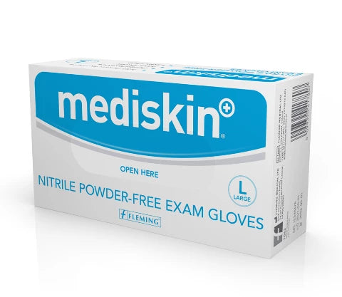 Mediskin Powder-Free Nitrile Examination Gloves are ideal for conducting medical examinations, diagnostic and therapeutic procedures to protect patient and user from cross contamination or infection