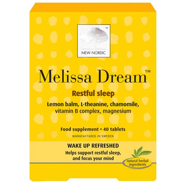 The Melissa Dream tablets are innovative tablets combining Lemon Balm, Camomile, vitamins and minerals in a formulation which does not cause drowsiness but nourishes the body to relaxation and tranquillity.