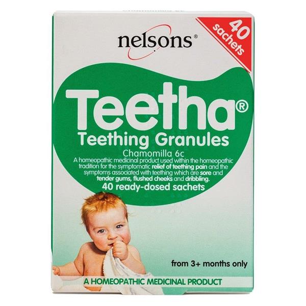 Teetha Teething Granules are a homeopathic medicinal product used within the homeopathic tradition for the symptomatic relief of teething pain and the symptoms associated with teething which are sore & tender gums, blushed cheeks and dribbling.