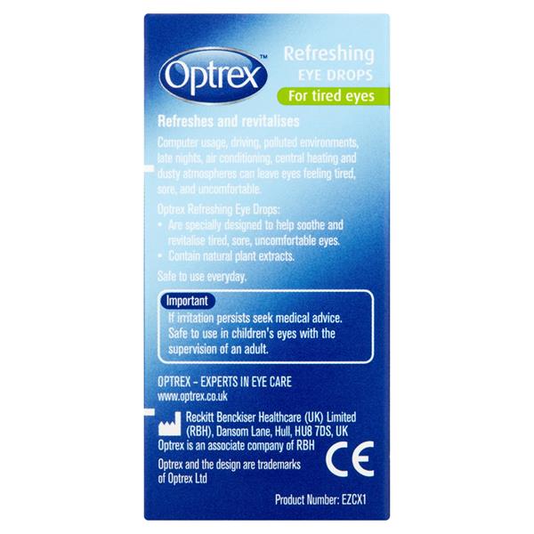 Computer usage, driving, polluted environments, late nights, air conditioning, central heating and dusty atmospheres can leave eyes feeling tired, sore, and uncomfortable. Optrex Refreshing Eye Drops are specially formulated to help combat the effects of modern living.