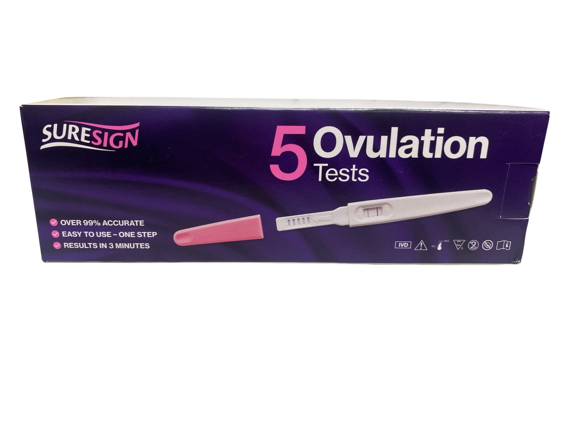 Suresign Ovulation Test is a rapid one step self-test for the qualitative detection of luteinising hormone (LH) in urine to aid in the detection of ovulation. The pack contains 5 ovulation tests.